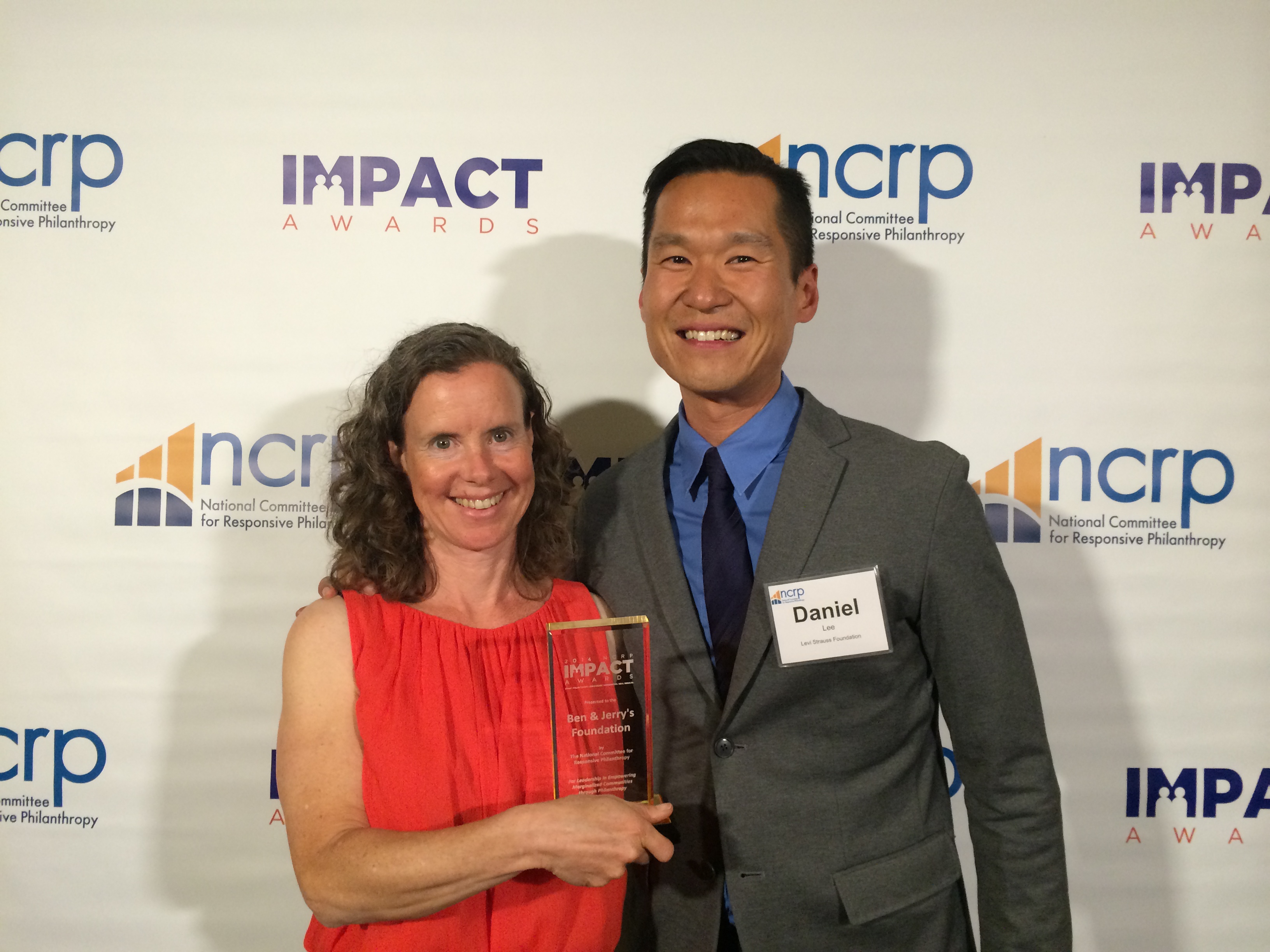 In 2013, the National Committee for Responsive Philanthropy (NCRP) awarded the Levi Strauss Foundation (LSF) with its inaugural NCRP Impact Award in the corporate foundation category. Last night, Daniel Lee, Executive Director of the Levi Strauss Foundation, had the honor of recognizing this year’s corporate impact award winner – the Ben & Jerry’s Foundation. And while we are in two vastly different industries, we have a lot in common when it comes to values and giving back to our communities.