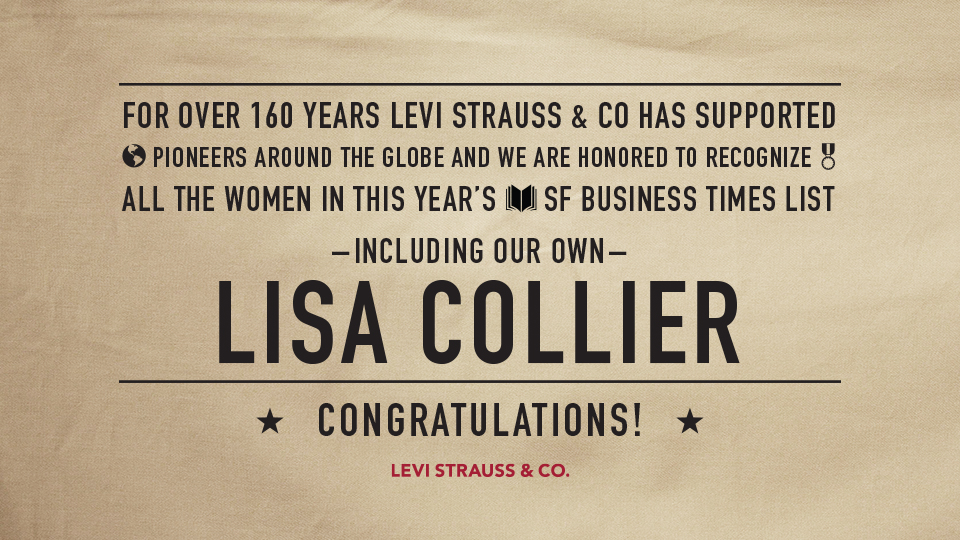 At Levi Strauss & Co., we’re always impressed by the caliber of our leaders and employees, but it’s especially nice when others take notice, too. Last night, the San Francisco Business Times did just that by honoring Lisa Collier, Executive Vice President of the Dockers®, dENiZen® and Signature by Levi Strauss & Co.™ brands, as one of the Most Influential Women of the Bay Area.
