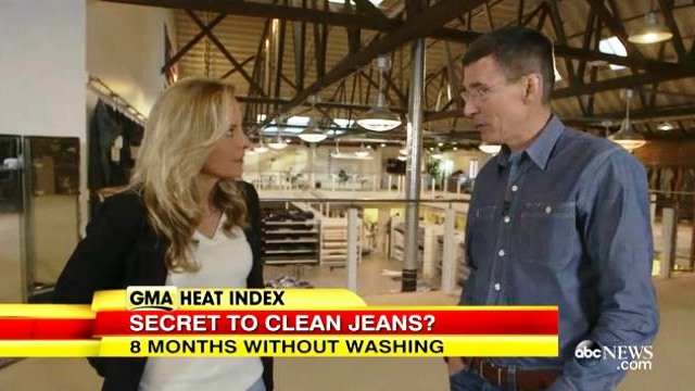 To test Bergh’s statement, ABC News’ Becky Worley wore her pair of light-colored boyfriend jeans from LS&Co. for eight months without washing them and shared her experience on Good Morning America this morning.