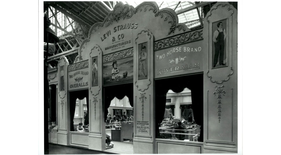 The PPIE featured a variety of exhibit halls called “Palaces,” and LS&Co. hosted a large booth inside the “Palace of Manufactures and Varied Industries.” The booth housed a working sewing line where workers made Koveralls — our one-piece children’s garment that was launched in 1912.