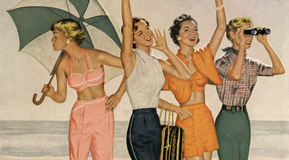 ![1950s. As seen in Seventeen. Flamour. Charm. Mademoiselle. Levi's Casuals Sanforized. Real eye-openers ... the marvelous new mix-or-match Levi's Casuals ... a complete leisure-time wardrobe for the young in heart! Your favorite fun-time fabrics ... denim, poplin, sailcloth and kayak cloth ... All Sanforized, of course ... in a rainbow of color-fast, harmonizing heavenly hues! Denim ... shorties, shorts, bermudas, pedal pushers, culottes, playsuit, ranch pants, skirt, sun bra, casual jacket, sleeveless shirt, frontier jacket ... about $1.95 to $5.95. Poplin ... shorts, bermudas, pedal pushers, smoothies [slim, trim pants], halter, sun bra, bolero ... about $1.95 to $4.95. Sailcloth ... shorts, bermudas, pedal pushers, toreadors, halter, bolero ... about $2.95 to $4.95. Kayak cloth ... bermudas only ... about $4.95. At better stores everywhere. For name of nearest dealer, write Levi Strauss of California. San Francisco 6. Makers of world-famous Levi's. Drawing of group](http://levistrauss.com/wp-content/uploads/2015/07/CCD_DRE_Women_0019-316x500.jpg)
