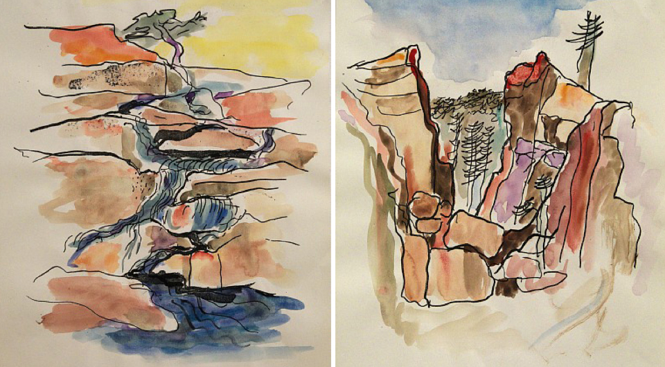 Yosemite Studies by Lawrence Halprin, 1970, which inspired the Levi’s Plaza Soft Park (left) and Hard Park (right). (Images courtesy of the Halprin Family Archive and Edward Cella Art + Architecture)