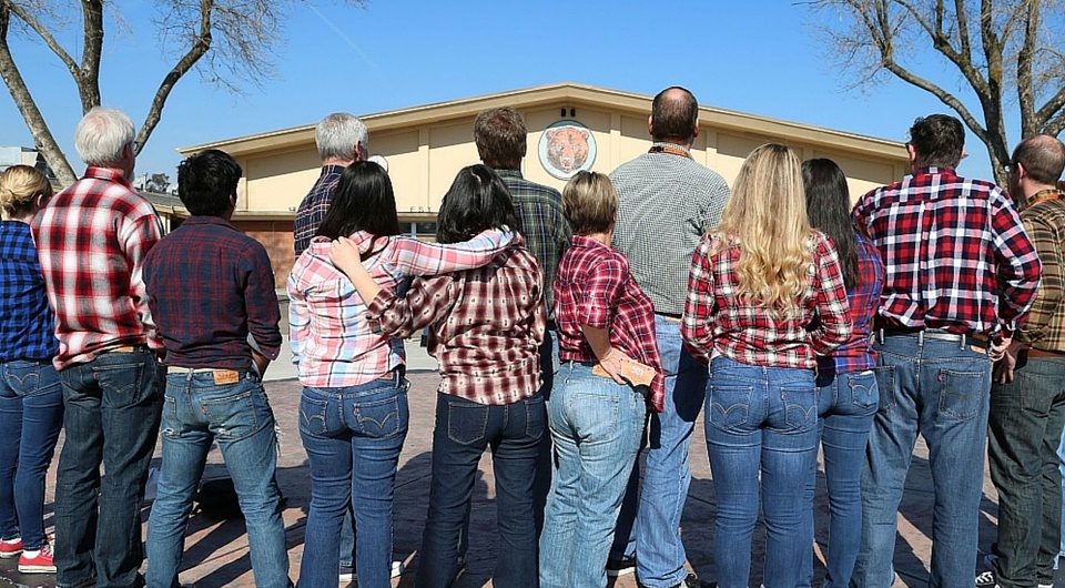 Bob passed away in 2015, but his memory lives on at the school. Every year, on the first Friday of February — Bob Means Day — students, faculty and staff remember the beloved teacher by donning Levi’s 501® jeans, flannel shirts and Converse shoes. Just a few of the photos from this year’s Bob Means Day are included in this post.