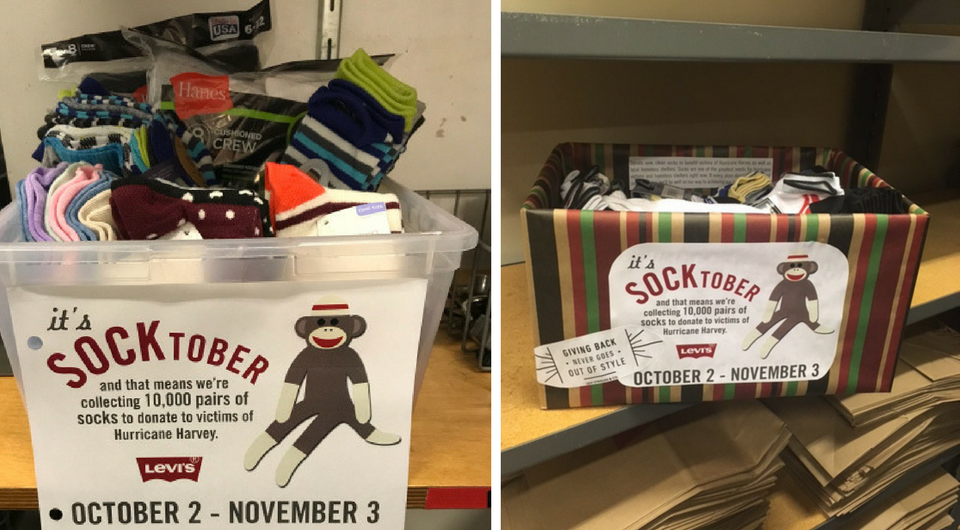 “In retail, we are always looking for creative and engaging ways for our teams to give back to the communities we are in,” said District Manager Kristen Tupa. “Socktober was a great way to bring awareness not only to the needs of those impacted by natural disasters but also to the needs of our local homeless shelters.”