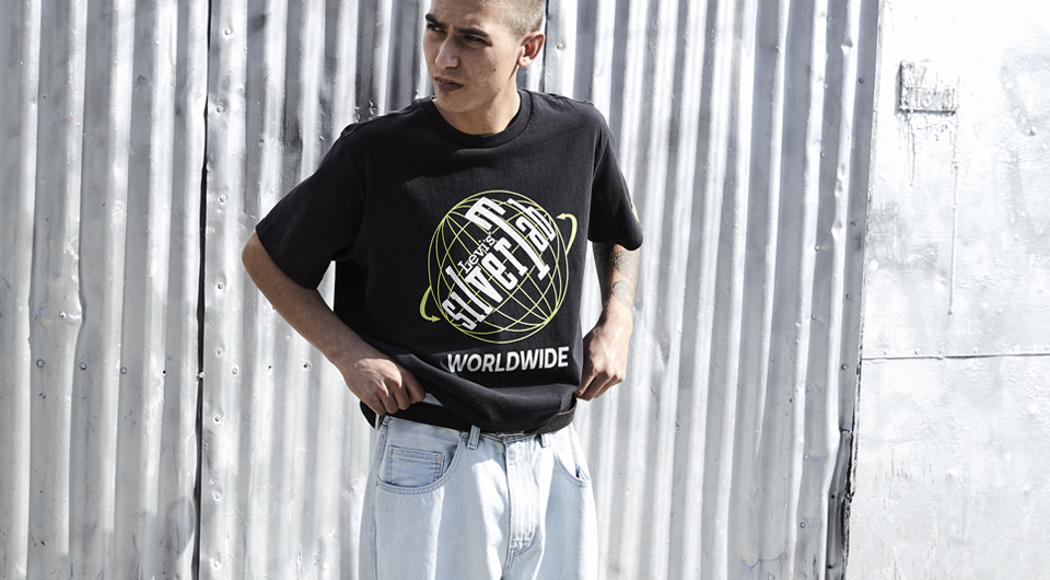 Non-stretch denim jeans, carpenter pants and new carpenter shorts in bold stripes and iconic washing all come in baggy fits that rest below the waist, allowing the wearer to rock that ‘90s attitude every skater, rapper, raver and other Gen X-er wore back in the day. Loose-fitting overalls, a big work shirt and graphic tees emblazoned with the SilverTab® Worldwide logo round out the collection.