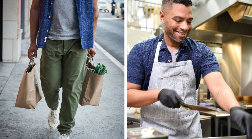 Chef Dante Gonzales is a trailblazer in the food industry. You might even call him a food crusader. Remixing recipes he learned from his grandmother, his food is always the centerpiece of his parties, which combine his unique culinary voice with vibrant music and art. For someone who spends some days making deliveries around the city and others cooking in a kitchen for 12 hours, khakis are the go-to because they’re tough, comfortable, and still look good when he steps into the party.