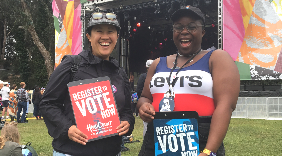 Across the U.S., our employees have been volunteering in their communities to register others. Through a partnership with Headcount, a nonpartisan organization that promotes voter registration through the power of music, LS&Co. volunteers have been at concerts and music festivals registering voters. Headcount’s shared passion around activism and music was a natural fit for a company that loves music, and we’re excited to continue our work with them throughout the fall.