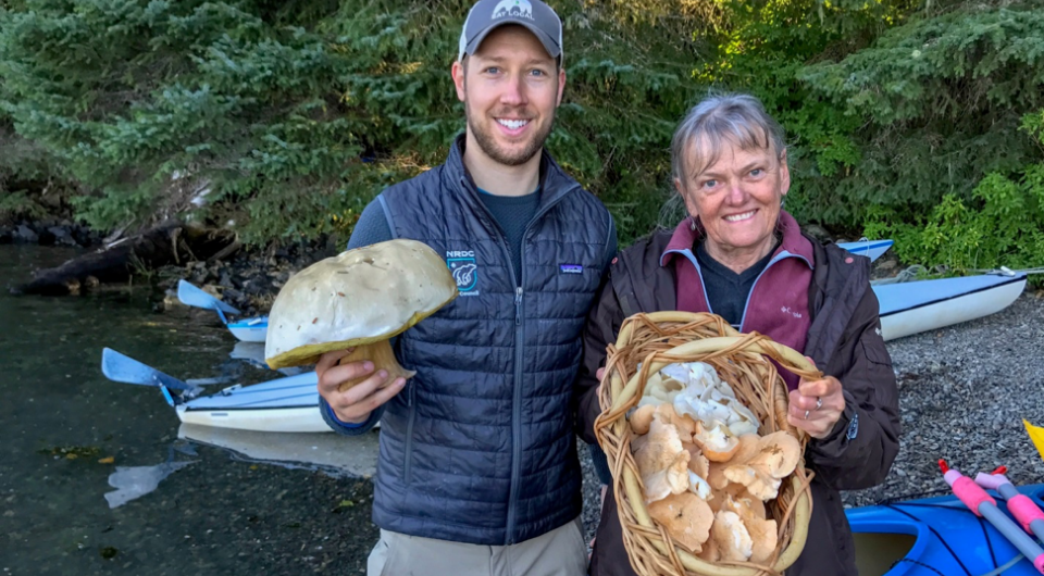 My experience was more foraging than farming. My delightful hosts, Rick and Dorle Harness, taught me how to spot chicken of the woods, puffballs, angel wings, and hedgehogs (all edible mushrooms). We kayaked across the bay to recover floating bullwhip kelp, a super food. We plucked oyster leaf, arrow grass and goose tongue from rocky beach coves for soups. We spent hours collecting wild blueberries and salmon berries. We collected drinking water from a nearby waterfall in a couple dozen buckets. They showed me how to use bladder wrack (an algae) as an anti-inflammatory ointment and how to transform the prickly devil’s club plant into a salve.