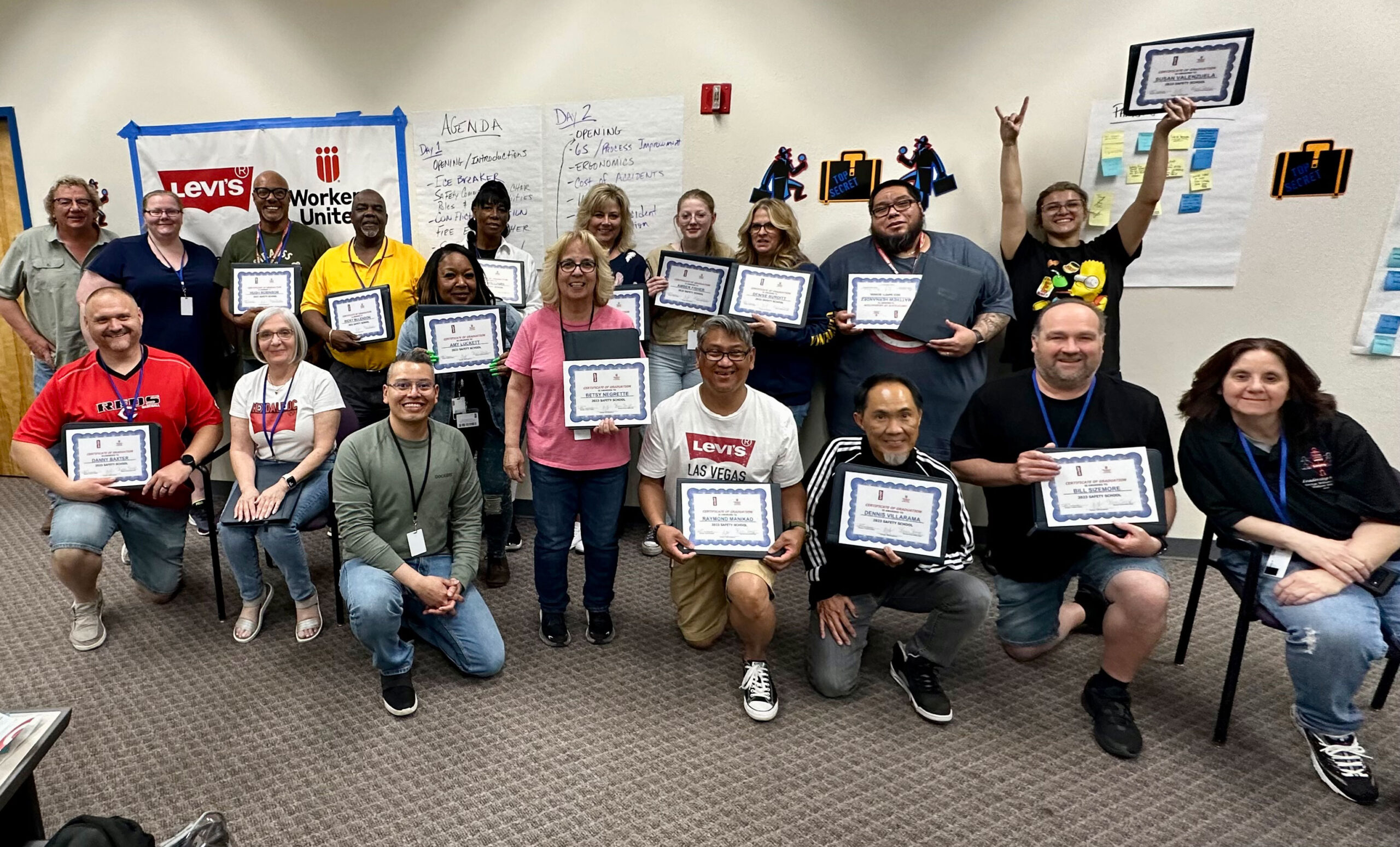 The Safety School program has been conducted at Levi Strauss & Co. every year for the past 23 years in partnership with Workers United and plays a key part in ensuring a safe work environment for DC employees. Select representatives from the bargaining unit, as well as at least one management employee from each U.S. and Canada DC are invited to attend the two-day program. Attendees then train others on what they learned upon returning to their facility.
